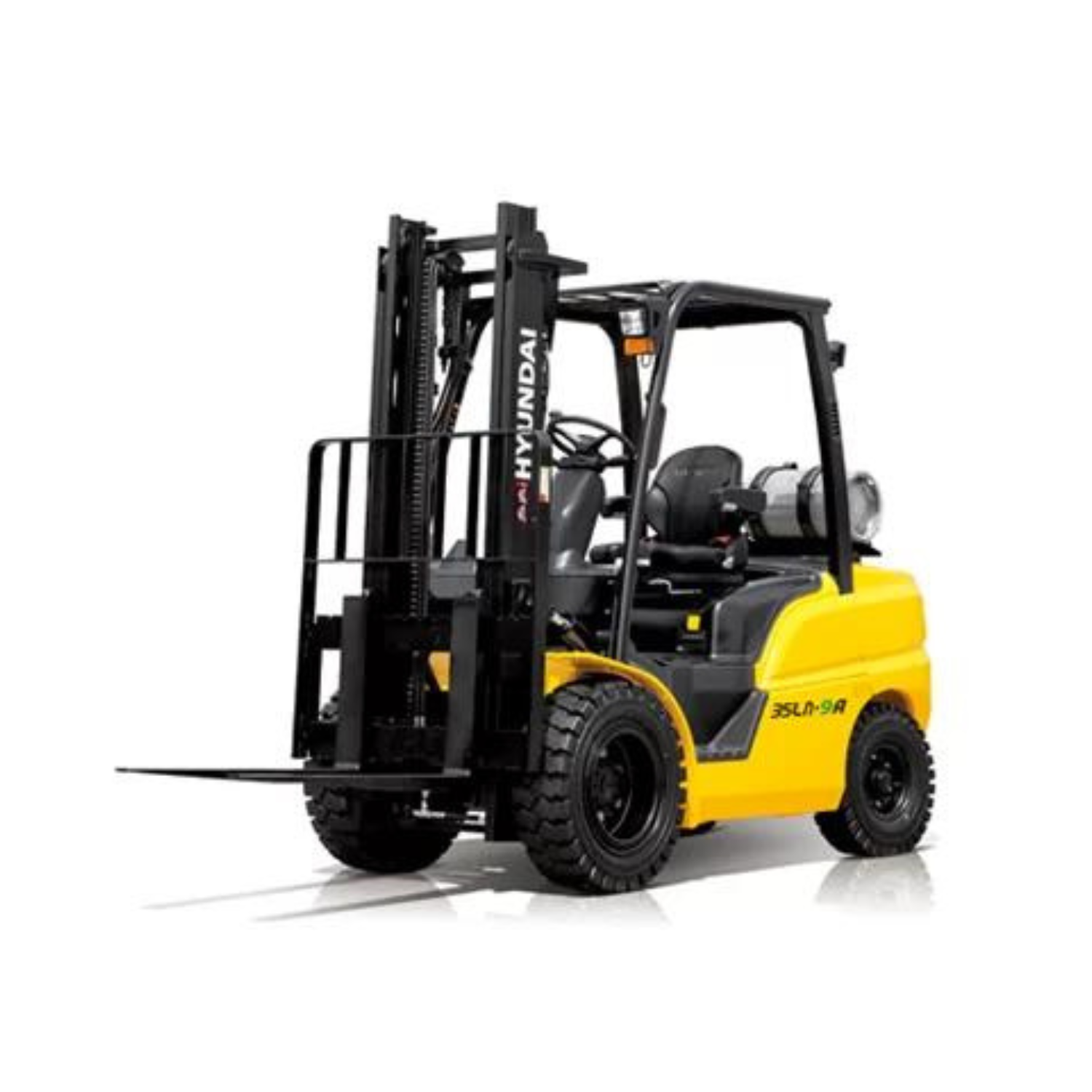 The Hyundai 9A-range of 2.5 – 3.5 ton LPG powered forklifts feature powerful LPG Stage V engines which provide high power at low engine speed, making them suitable for loading and unloading on ramps, where fast lift speeds are required, or repetitive use is needed.