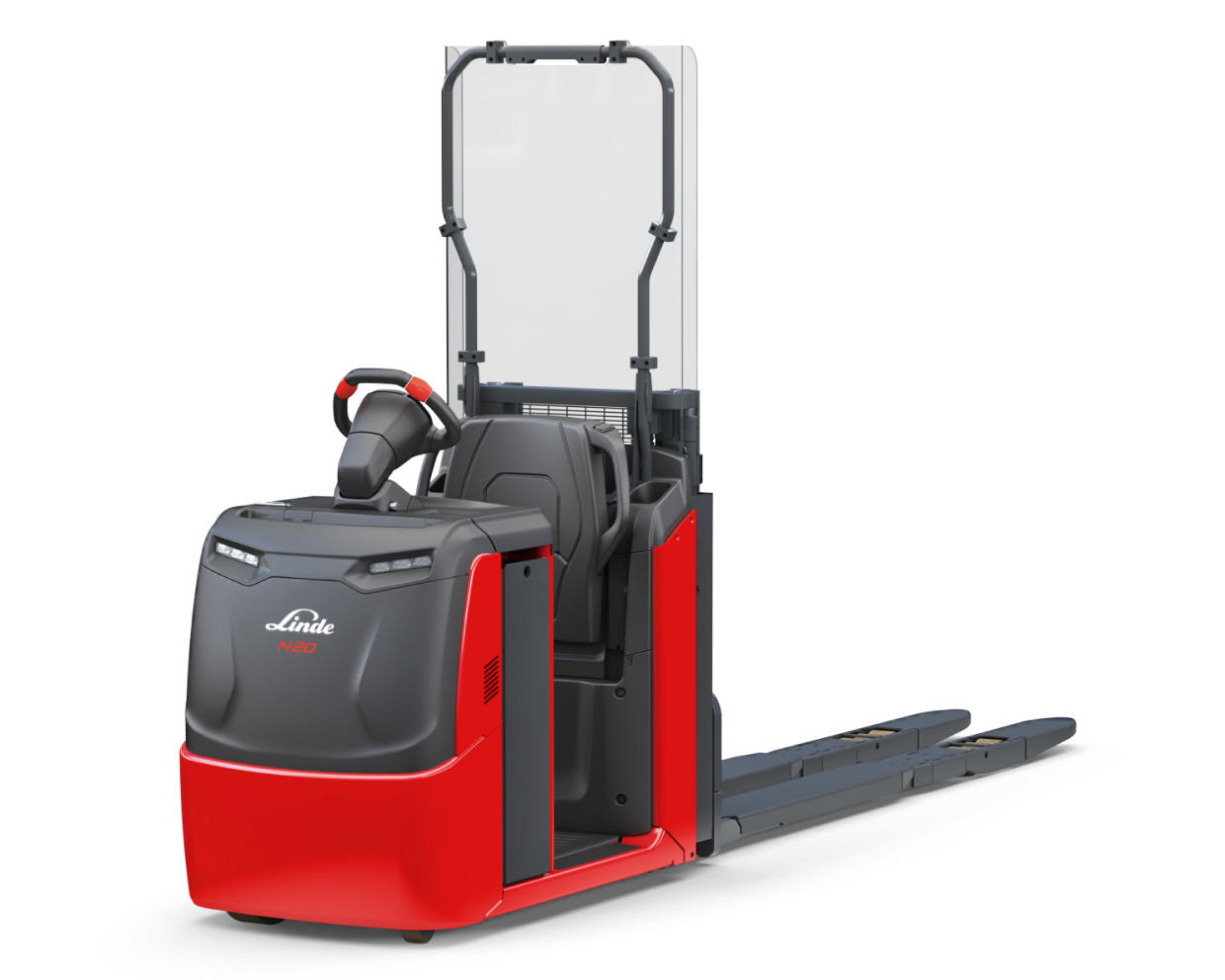 Equipped with long load arms and an additional liftable fork, the N20 LoL from Linde Material Handling enables the loading of two pallets at a back-friendly height in just one order picking cycle. First, the operator fills one pallet at an ergonomic height and attaches the second pallet vertically to the back of the fork.